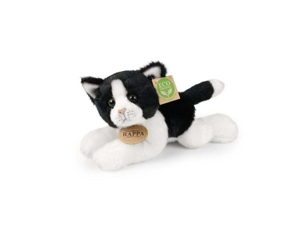 PLYŠOVÁ KOČKA BÍLO-ČERNÁ LEŽÍCÍ 16 CM ECO-FRIENDLY