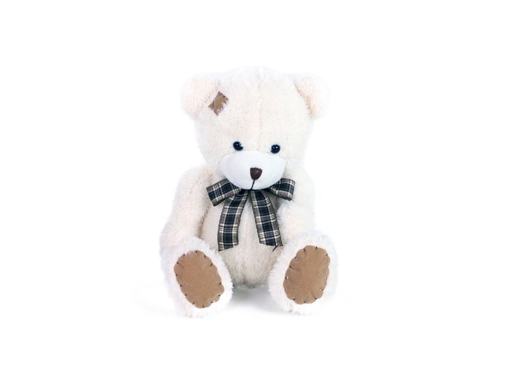 Plyšový medvěd s mašlí a záplatou 27 cm béžový