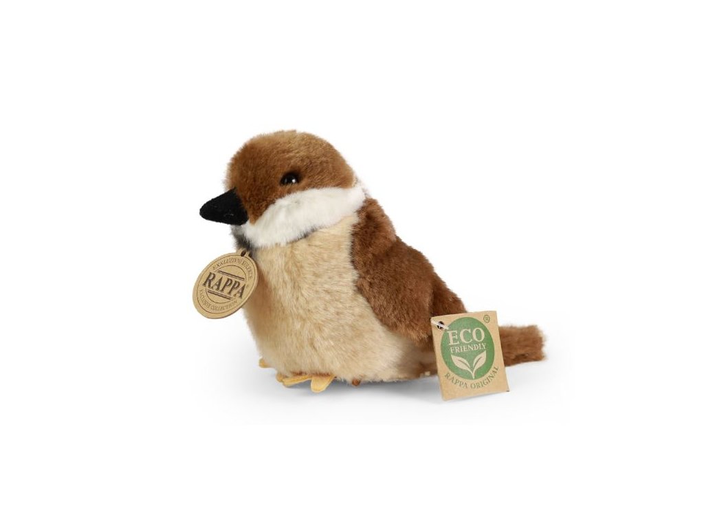 Plyšový vrabec ve velikosti 13 cm je vyroben z exkluzivní, velmi kvalitní plyše. Tento plyšový kousek je součástí exkluzivní kolekce plyšových hraček RAPPA. Co to vlastně ECO-FRIENDLY znamená? Výplň plyšové hračky je vyrobena z recyklovaných PET lahví. Tento materiál je zcela bezpečný, na omak nerozeznatelný od standartní výplně a plně atestovaný pro bezpečnost i těch nejmenších. Rozhodli jsme se jít zelenou cestou co nejméně zatěžující životní prostředí- cestou ECO-FRIENDLY.