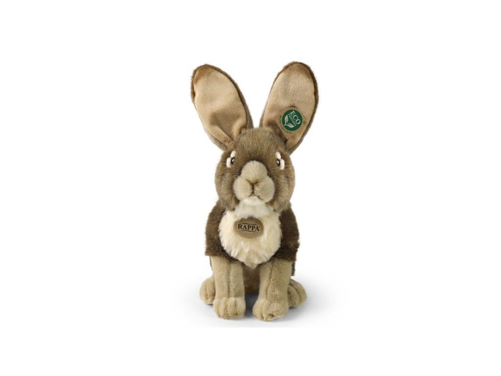 Sedící plyšový zajíc o velikosti 30 cm. Zajíc je vyroben z vysoce kvalitní plyše a je tak součástí exkluzivní kolekce plyšových hraček RAPPA. Co to vlastně ECO-FRIENDLY znamená? Výplň plyšové hračky je vyrobena z recyklovaných PET lahví. Tento materiál je zcela bezpečný, na omak nerozeznatelný od standardní výplně a plně atestovaný pro bezpečnost i těch nejmenších. Rozhodli jsme se jít zelenou cestou co nejméně zatěžující životní prostředí- cestou ECO-FRIENDLY.