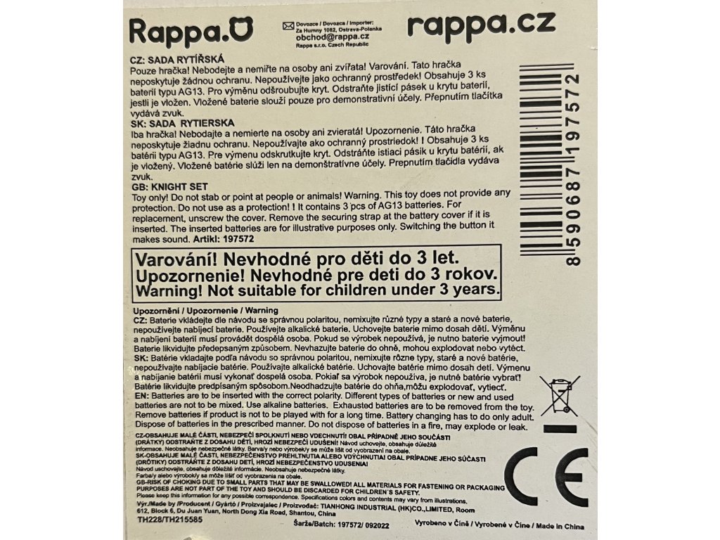 Chceš se stát statečným rytířem? S touto sadou bude tvá výbava kompletní a zaručeně vyhraješ každou bitvu! Set obsahuje meč dlouhý cca 56 cm, který vydává zvuky a ochranný štít. Součástí meče jsou 3 ks baterií typu LR44.