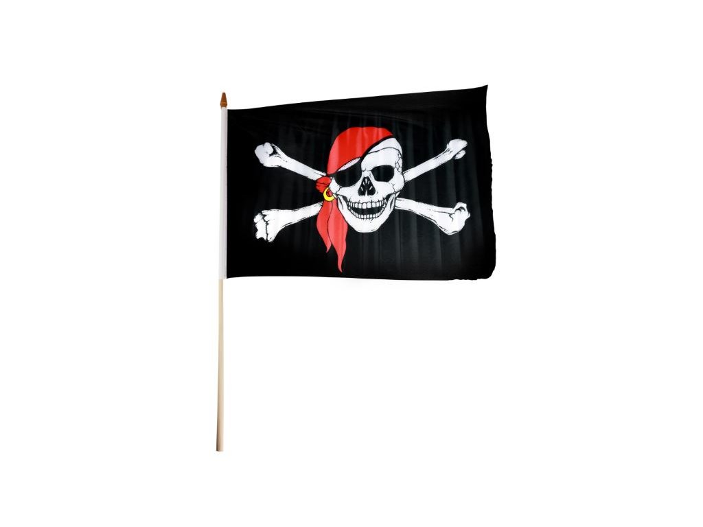 Parádní vlajka s děsivým, pirátským motivem pro skutečné piráty! Vlajka má rozměry 47 x 30 cm a je připevněna k dřevěné hůlce dlouhé 62 cm. Tento parádní kousek je senzačním doplňkem či dekorací každého karnevalového večírku!