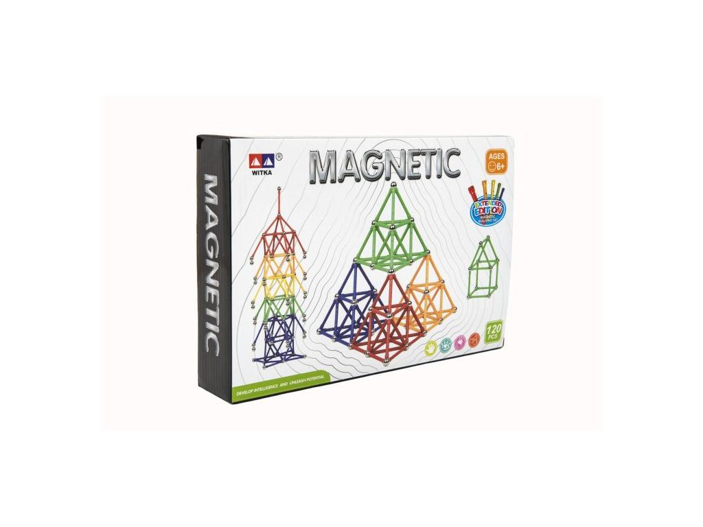 Základními součástmi stavebnice jsou magnetické tyčinky a kovové kuličky. Pomocí těchto dvou součástek a jejich magnetickým vlastnostem můžete spojovat jednotlivé díly do všemožných tvarů a objektů. Obsahuje celkem 120 dílků. Díly jsou kompatibilní s ostatními magnetickými stavebnicemi a lze je vzájemně kombinovat. Rozměry balení 28 x 19 x 5 cm. Vhodné pro děti od 6 let