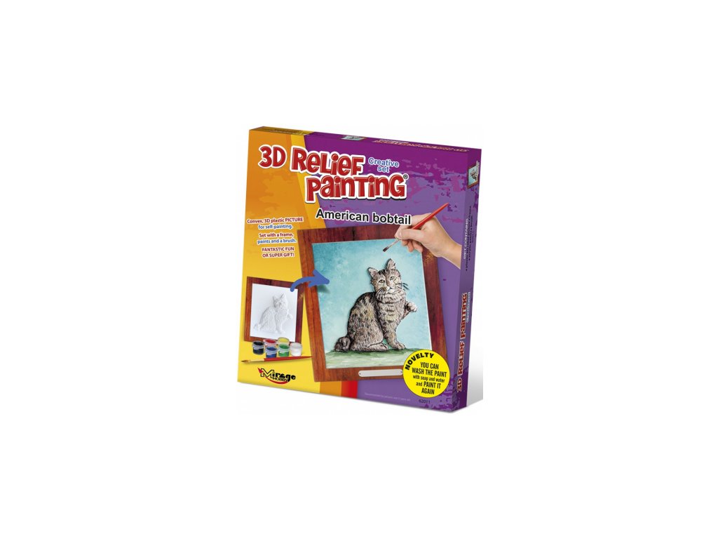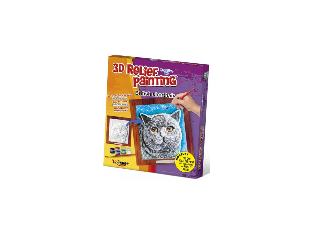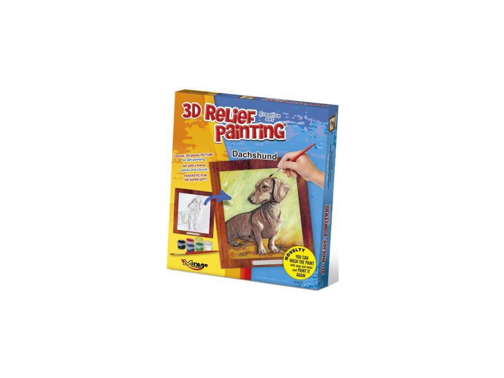 3D obrázek - plastový reliéfní obrázek. Sada obsahuje plastový obrázek 15x17 cm, papírový rámeček 19x21cm , akrylové barvy (6 ks) štětec.