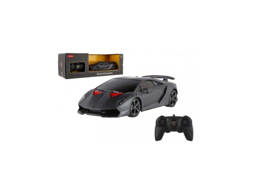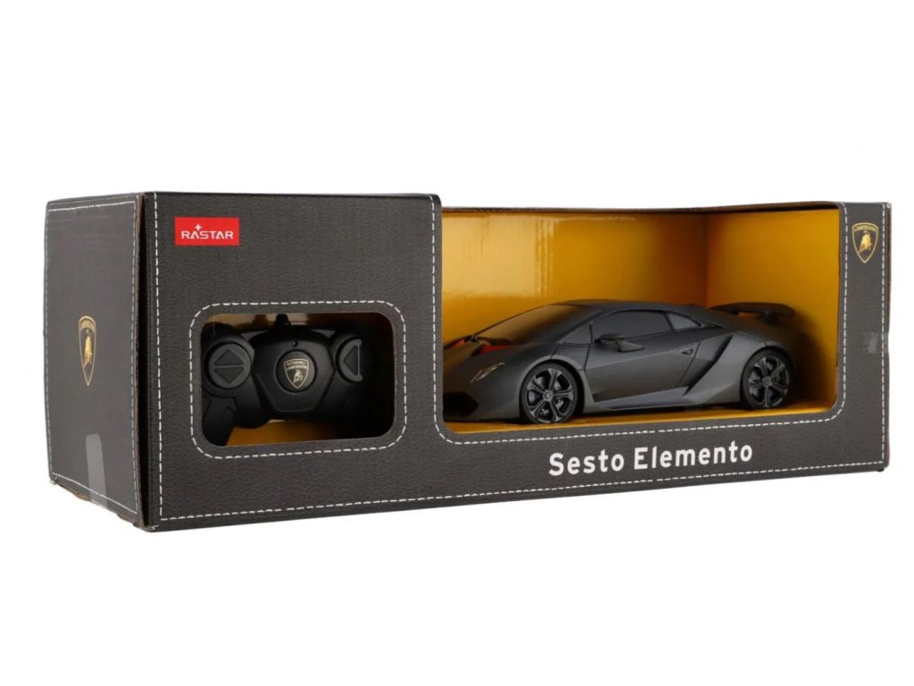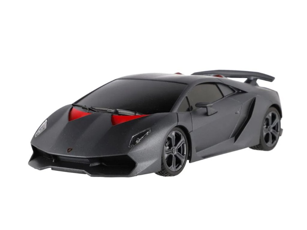 Krásný RC model autaLamborghini Sesto Elemento v tmavě šedé metalíze s červenými prvky. Jedná se o propracovaný model s plastovými doplňky. Auto je na dálkové ovládání a dokáže se pohybovat do čtyř směrů - dopředu, dozadu, doprava a doleva. Frekvence je 2,4 GHz. Měřítko je 1:18.