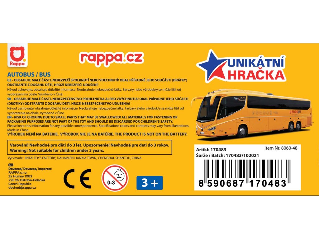 Autobus RegioJet kov/plast 18,5 cm na zpětné natažení