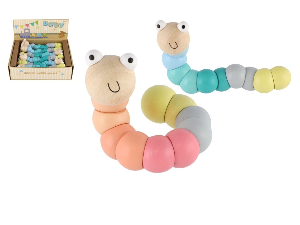 Červík/housenka kloubový dřevo 16cm asst 2 barvy 12ks v boxu 10m+