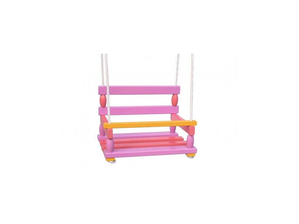 Krásná dřevěná houpačka v růžovo žluté barvě. Vhodná pro použití doma i na zahradě. Houpačka je bezpečná a stabilní.