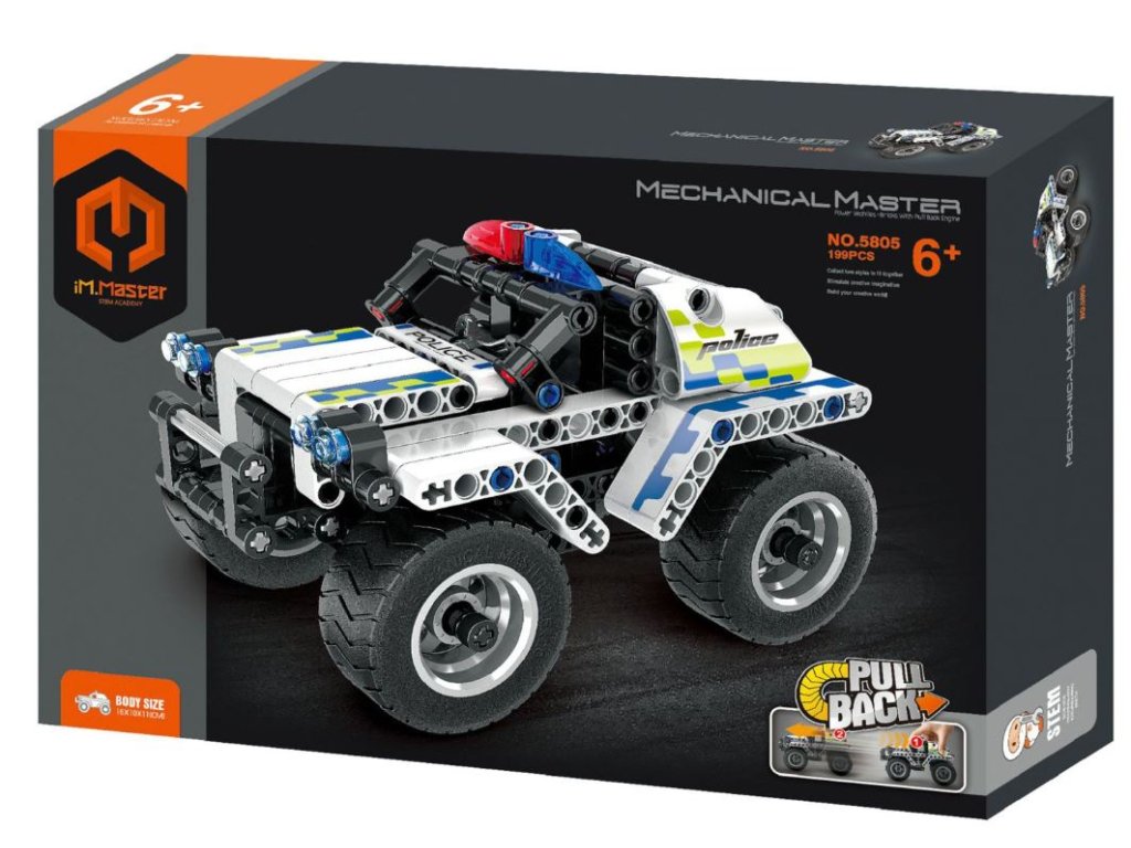 Popis iM.Master Stavebnice iM.MASTER policejní auto na zpětné natažení plast 199 dílků v krabici 29x20x6cm