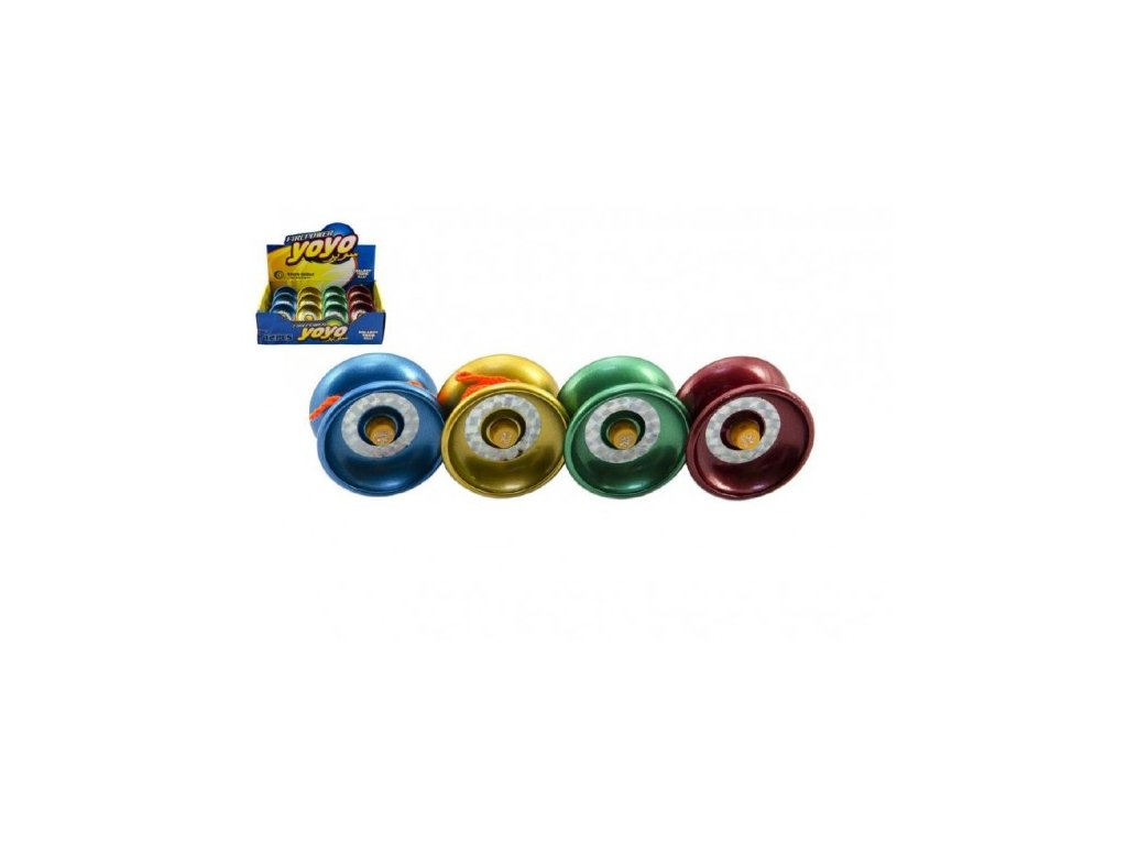 Kovové jojo tvoří dva stejně velké a těžké disky. Na ose je namotán bavlněný provázek a na jeho druhém konci je smyčka. Smyčku si navléknete na prst a můžete si s jojem hrát. Vhodné od 3 let.