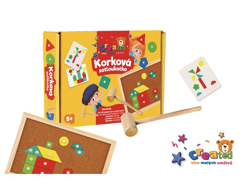 Korková zatloukačka created dřevo s doplňky v krabici 33x24x4.5cm
