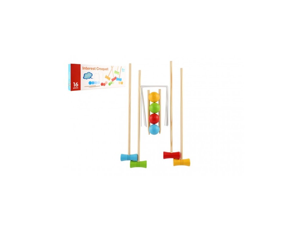 Rozmístěte branky dle návodu a postupně pomocí paliček dostaňte míček skrz všechny branky. Hráč s nejnižším počtem úderů vyhrává. Užijte si venku zábavné odpoledne! Kdo vyhraje? Rozměry balení 59 x 21 x 6 cm Vhodné pro děti od 6 let