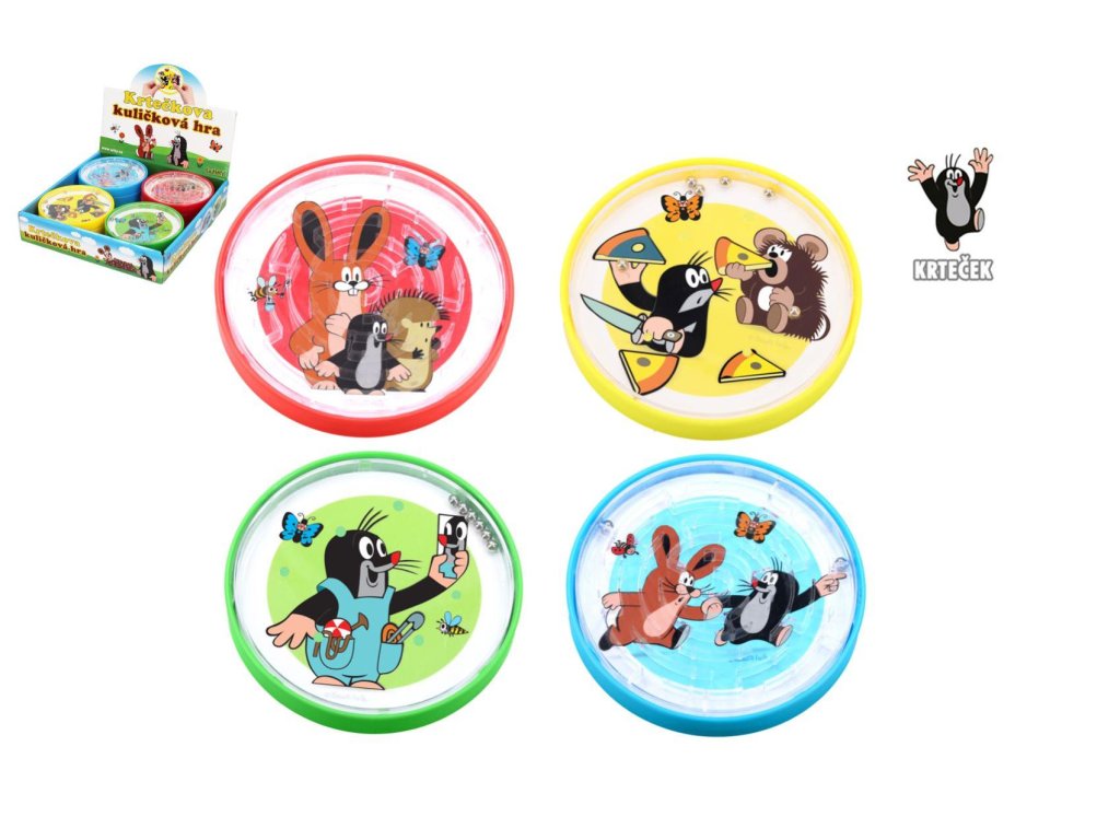 Kuličková hra Krtek hlavolam plast 9cm 2 druhy 4 barvy 12ks v boxu