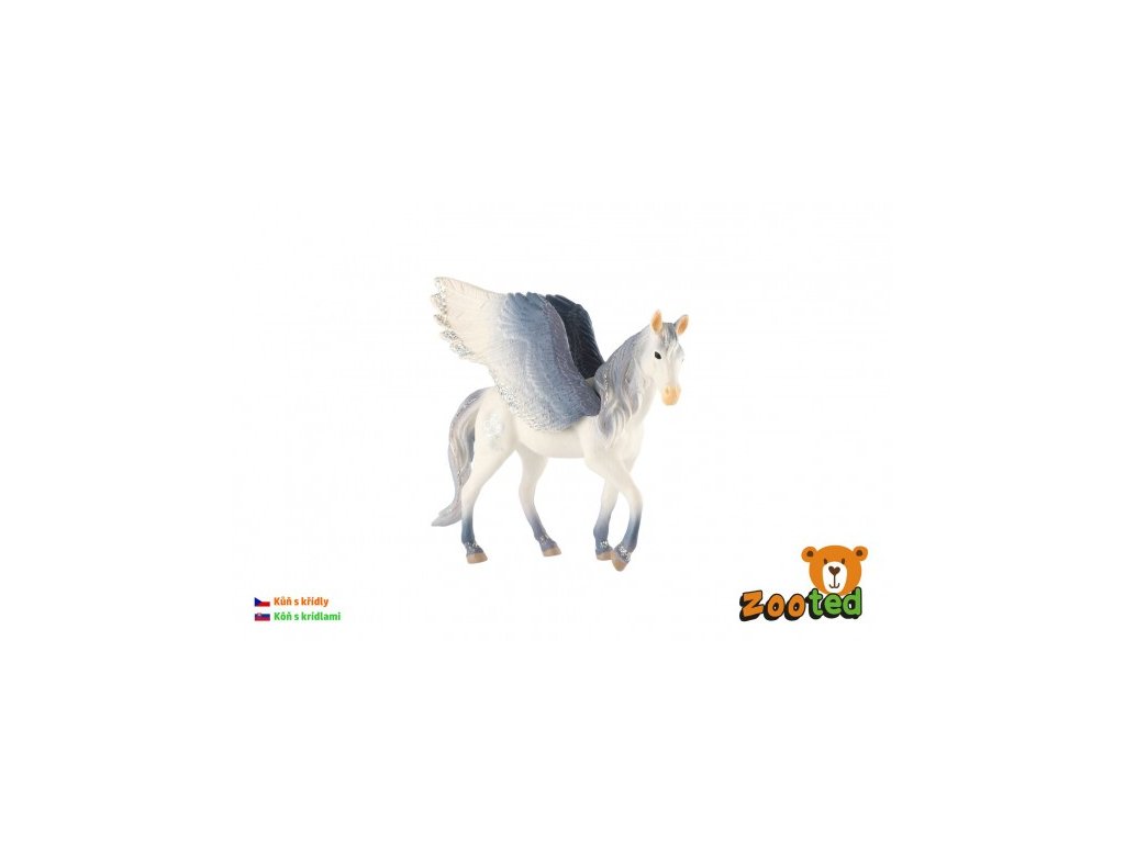 Kůň s křídly bílo-šedý zooted plast 14cm