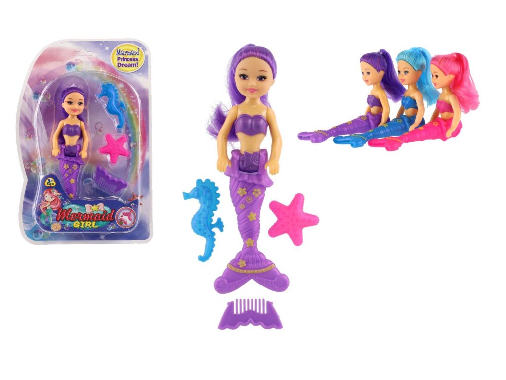 Panenka mořská panna s doplňky plast 15cm 3 barvy na kartě