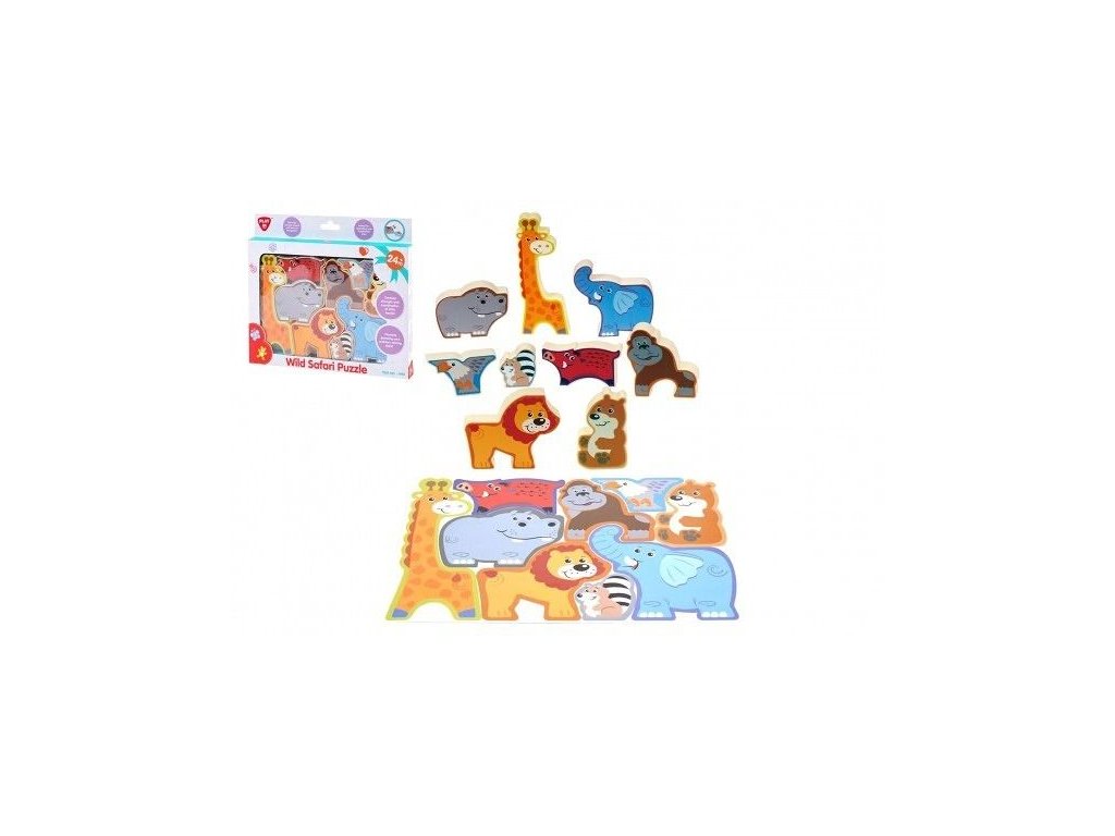 Přesouvejte zvířátka tak, aby do sebe všechna pěkně zapadla. Dětem pomůže předloha. S dílky zvířátek ze safari (9 ks) si děti mohou hrát i samostatně.