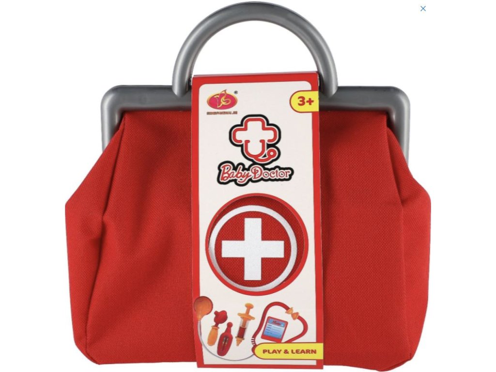 S touto doktorskou sadou si děti mohou zahrát hru na doktory. V praktické lékařské tašce najdou děti vše potřebné. Sada obsahuje stetoskop, teploměr, injekci a kukátko do uší neboli otoskop. Rozměry balení 20 x 22 x 8 cm. Vhodné pro děti od 3 let.