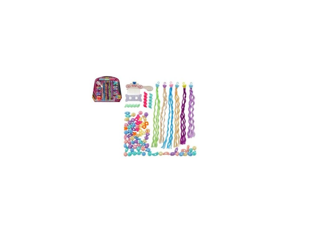 Sada korálků a copánků na vlasy plast mix druhů na kartě 30x26x3cm