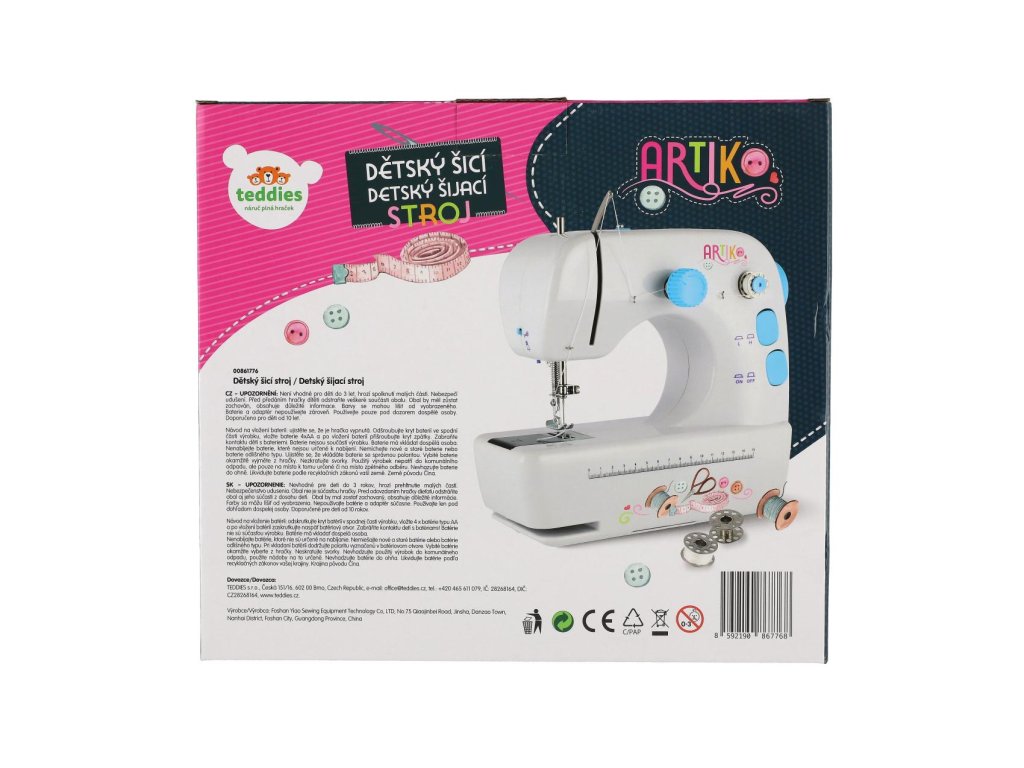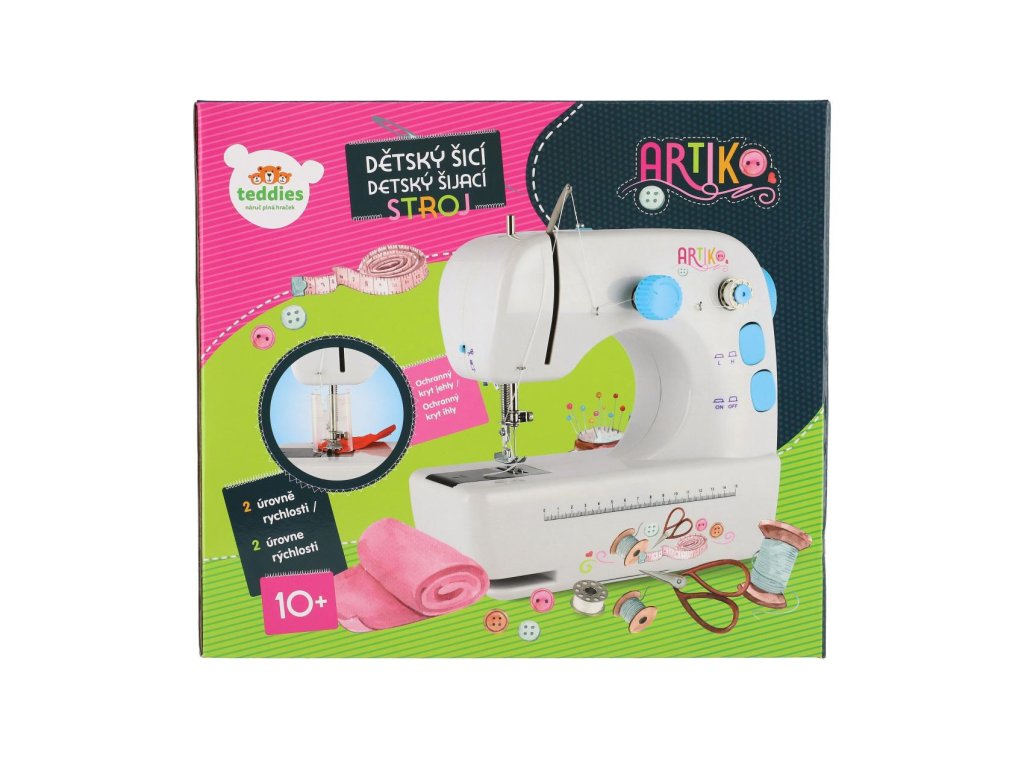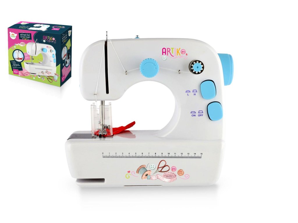 Šicí stroj umožňuje malým švadlenkám vstoupit do světa modních trendů a objevování této fantastické ruční práce. Tento model šicího stroje má kovové konstrukce, cívky, nitě, ale hlavně má plastový ochranný kryt jehly. Má 2 rychlosti šití, osvětlení a je určen na občasné šití, ale je plnohodnotný. Napájení stroje je buď pomocí tužkových baterií, nebo je součástí balení externí zdroj napájení. Doplňky součástí balení: 1x nožní pedál s kabelem 1x navlékač jehly 1x cívka s nití 3x cívka bez nitě 1x náhradní jehla 1x externí zdroj napájení Baterie 4x AAA nejsou součástí balení. Rozměry balení 30 x 26 x 13 cm Vhodné pro děti od 10 let