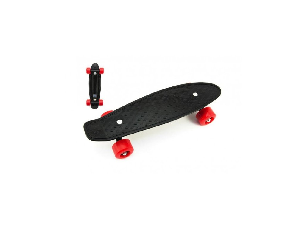 Dětský skateboard - pennyboard pro začínající skateboardisty. Velikost 43 cm. Nosnost 60 kg, plastové osy, černá deska, červená kola. Vhodné od 8 let.