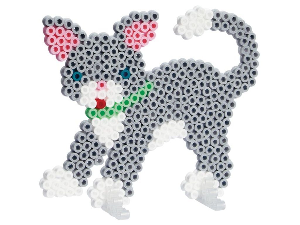 Balení obsahuje: cca 2.000 zažehlovacích korálků, podložky č. H288 kočka, č. H287 pes, 6 stojánků, barevná tištěná předloha, zažehlovací papír a návod k použití.