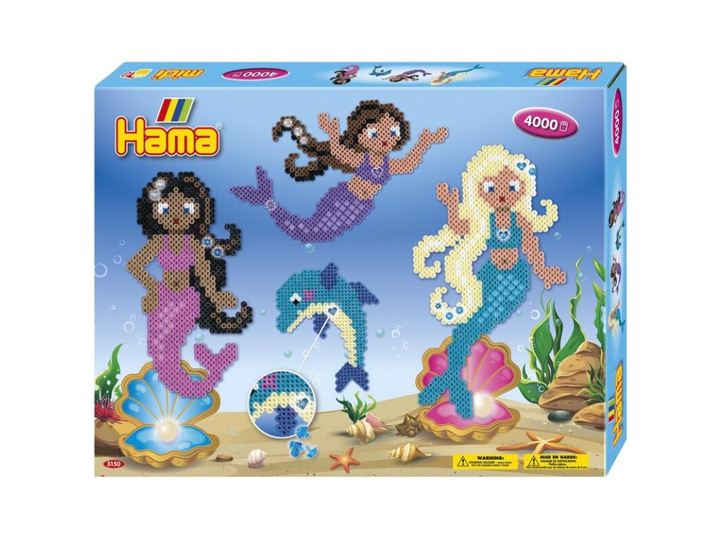 Dárková sada MOŘSKÉ PANNY. Tato sada okouzlí všechny holčičky, které rády něco zdobí. Po zažehlení ozdobí mořské panny HAMA drahokamy, aby byly úplně dokonalé!
